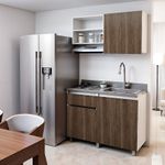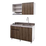 La Cocina Integral Peka Milán de 1.20 cm está fabricada en aglomerado resistente a la humedad (RH), ideal para ofrecer durabilidad, funcionalidad y estilo en espacios reducidos. Su diseño compacto y moderno, en combinación de colores blanco y café, se adapta perfectamente a cocinas pequeñas. Cuenta con puertas batientes con sistema de cierre lento, que evitan golpes y garantizan mayor vida útil, además de cajones con rieles de extensión total para un acceso cómodo y completo al interior. Una opción práctica, estética y resistente para optimizar tu espacio.