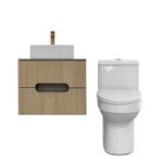 El Combo Mueble Palio – Sanitario Bologna es una solución completa para baños modernos, que combina diseño, funcionalidad y elegancia. Incluye mueble de baño Palio flotante 60 × 60 × 45 cm, lavamanos vessel Reus Slim blanco, sanitario Bologna blanco y grifería monocontrol alta Ferrara en acabado Brush Gold, creando un ambiente armonioso, sofisticado y práctico. Ideal para optimizar espacios y renovar el baño con un estilo contemporáneo.