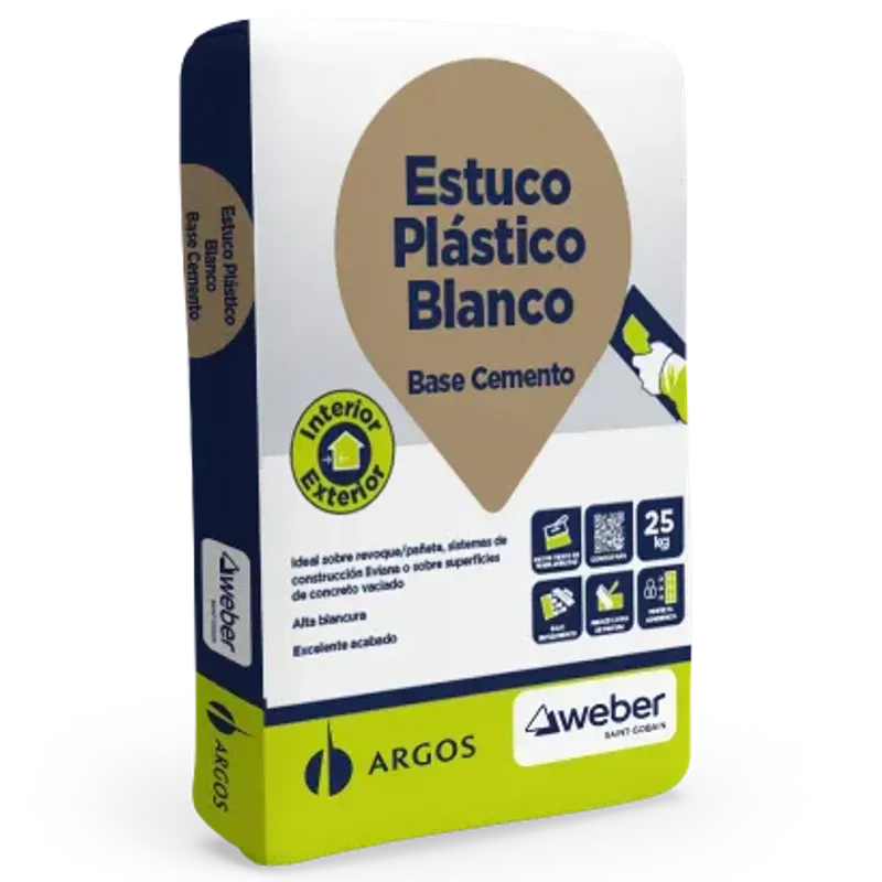 El Estuco Argos Plástico Blanco Base Cemento es un recubrimiento de alta calidad diseñado para lograr acabados lisos, uniformes y resistentes en superficies de mampostería, concreto y mortero.