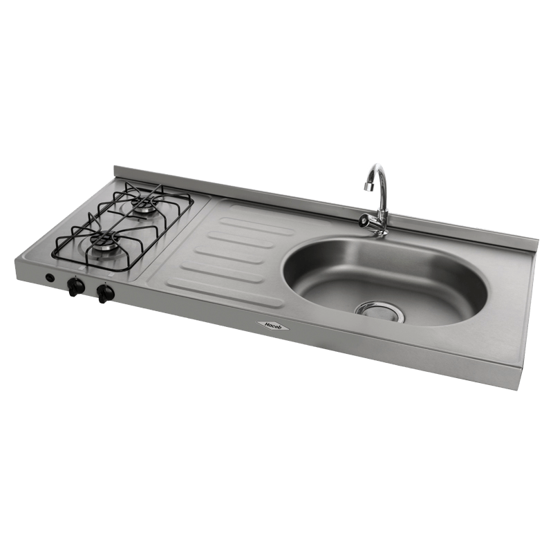 Meson en acero inoxidable a gas natural de dos puestos con pozuelo derecho de 120x50 cm