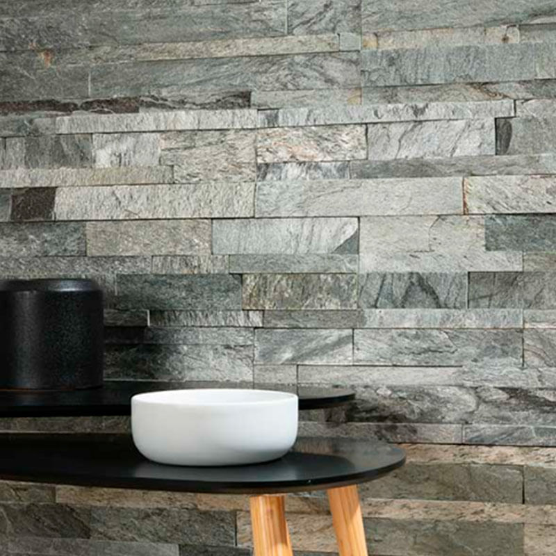 La pared piedra natural tipo mármol natura Silver 15x60 cm destaca por su estética de piedra natural tipo fachada, con un diseño alargado y textura sutil que aporta profundidad y elegancia a los espacios. Su tonalidad silver dentro de la gama de grises crea un estilo moderno y sofisticado, ideal para proyectos arquitectónicos contemporáneos.