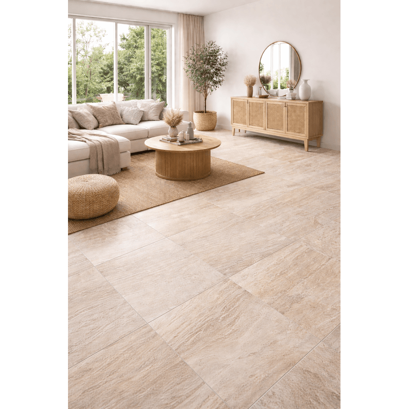 El porcelanato esmaltado Bossa Travertine-B 60x60 cm ofrece una estética elegante inspirada en el mármol travertino, ideal para pisos interiores. Su acabado brillante en tono beige aporta amplitud y luminosidad a los espacios, mientras que su variación de tono media con caras diferenciadas brinda un diseño natural y sofisticado. Perfecto para ambientes residenciales y comerciales de bajo tráfico.