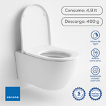 Renueva tu baño con el elegante Sanitario Suspendido Loto Blanco de Corona. Su novedoso diseño de taza alargada y su instalación suspendida optimizan el espacio y facilitan la limpieza. Este inodoro suspendido es un líder en ahorro de agua, gracias a su eficiente sistema de descarga Dual Flush con un consumo promedio de solo 4.8 litros. El producto cumple con certificaciones ecológicas como LEED y CASA COLOMBIA EDGE. Fabricado en porcelana vítrea y con asiento de cierre suave.