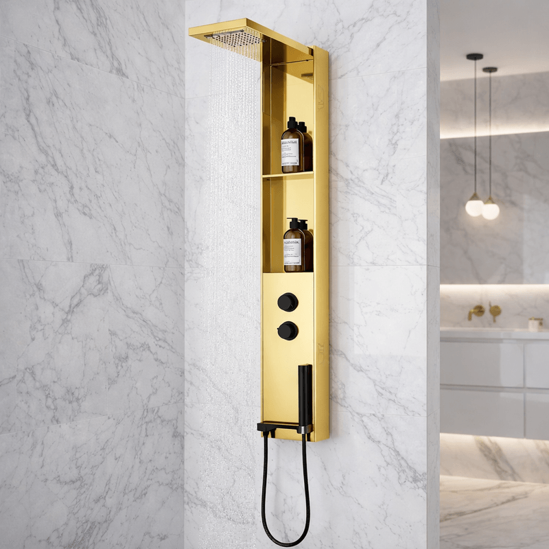 La Torre Ducha Solar Golden ofrece un equilibrio ideal entre diseño moderno y funcionalidad. Su acabado brillante en tono Gun Gray aporta un look elegante y contemporáneo, mientras que la teleducha integrada mejora la comodidad y versatilidad en el uso diario. Es una opción ideal para baños residenciales que buscan estilo, innovación y practicidad en un solo elemento.
